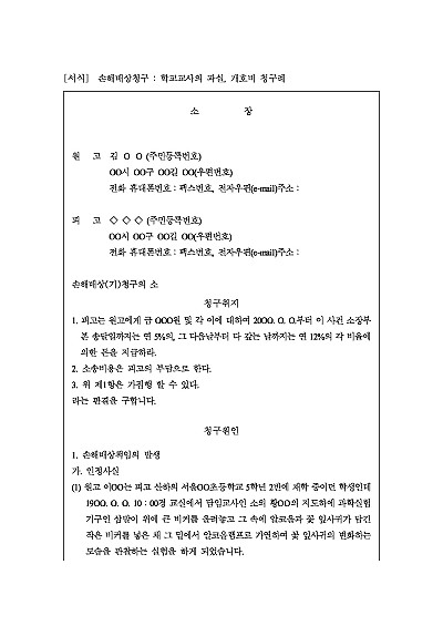 주요내용 : 초등학교 실습 중 학교고사의 과실로 학생에게 손해배상, 그에 따른 위자료 및 개호비 등의 손해배상을 청구하는 경우에 사용되어지는 소송양식임. 단 무단전재 방지목적으로 PDF 파일로 올리니, 구매하신 후 혹 원본 파일이 필요하신 분들은 톡이나 문자, 메일, 전화 등을 주시면 작성방법 등에 대한 간단한 무료상담과 함께 원본 파일을 보내드리도록 하겠습니다.