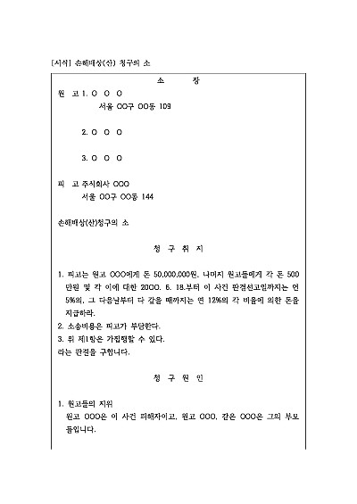 주요내용 : 산업재해. 일실수익, 향후치료비, 위자료 등, 타인의 고의 또는 과실로 인한 위법해위로 인해 발생한 정신적, 재산적 손해에 대해 법적 절차를 통해 금전으로 배상받을 목적으로 사용되어지는 소장 양식임. 단 무단전재 방지목적으로 PDF 파일로 올리니, 구매하신 후 혹 원본 파일이 필요하신 분들은 톡이나 문자, 메일, 전화 등을 주시면 작성방법 등에 대한 간단한 무료상담과 함께 원본 파일을 보내드리도록 하겠습니다.