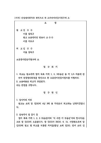 진정명의회복을 원인으로 한 소유권이전등기청구의 소 요약정보 및 구매