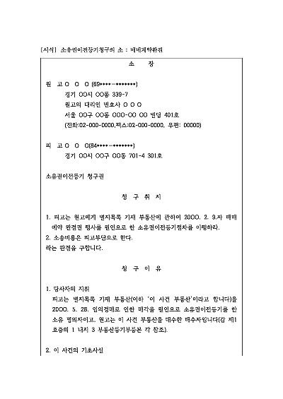 소유권이전등기청구의 소 : 매매계약완결 요약정보 및 구매