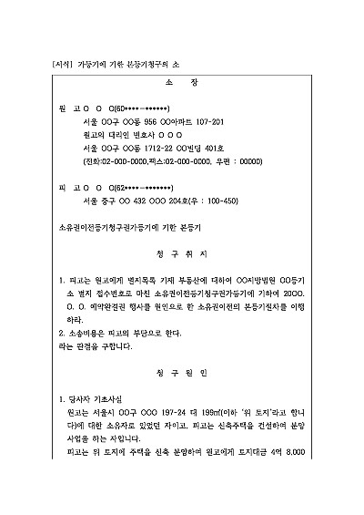 주요내용 : 가등기권자가 자신의 가등기를 바탕으로부동산의 소유권 이전 본등기를 강제하기 위한 목적으로 사용되어지는 소장 양식임. 단 무단전재 방지목적으로 PDF 파일로 올리니, 구매하신 후 혹 원본 파일이 필요하신 분들은 톡이나 문자, 메일, 전화 등을 주시면 작성방법 등에 대한 간단한 무료상담과 함께 원본 파일을 보내드리도록 하겠습니다.