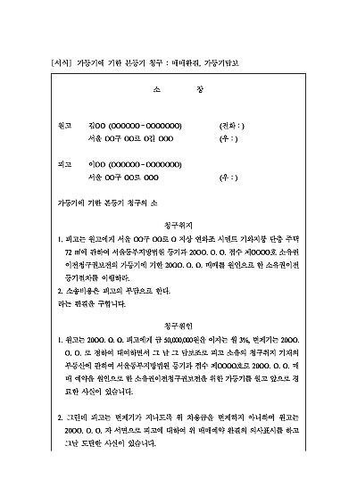 가등기에 기한 본등기청구 소장 양식 요약정보 및 구매
