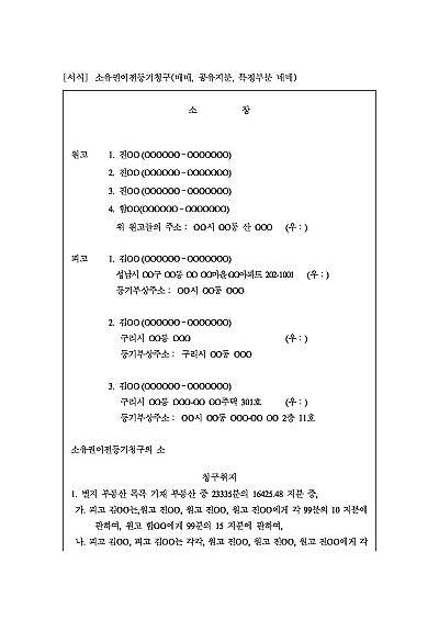 주요내용 : 피상속인과 매매계약을 통해 부동산 매입 후 피상속인 사망 및 상속개시, 이를 공동상속한 상속인들을 상대로 당해 부동산의 소유권이전등기청구 시 사용되는 양식임. 단 무단전재 방지목적으로 PDF 파일로 올리니, 구매하신 후 혹 원본 파일이 필요하신 분들은 톡이나 문자, 메일, 전화 등을 주시면 작성방법 등에 대한 간단한 무료상담과 함께 원본 파일을 보내드리도록 하겠습니다.