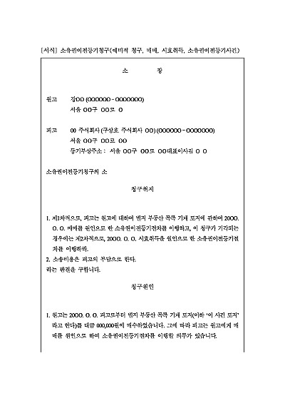 주요내용 : 주의적으로 매매를 원인으로 한 소유권이전등기청구, 예비적으로 시효취득을 원인으로 소유권이전등기청구. 매매로 취득 후 오랜 기간 소유권이전등기를 경료하지 아니하다가 추후 기존 소유자를 상대로 한 청구. 단 무단전재 방지목적으로 PDF 파일로 올리니, 구매하신 후 혹 원본 파일이 필요하신 분들은 톡이나 문자, 메일, 전화 등을 주시면 작성방법 등에 대한 간단한 무료상담과 함께 원본 파일을 보내드리도록 하겠습니다.