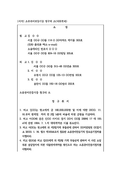 소유권이전등기등 청구의 소(대물변제) 요약정보 및 구매