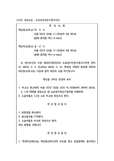 재심소장 : 소유권이전등기청구사건 요약정보 및 구매