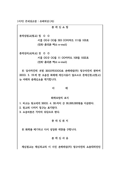 준재심소장 : 손해배상 (자) 요약정보 및 구매
