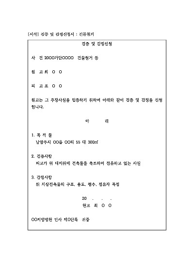 주요내용 : 법관의 판단을 보충하기 위해 사실관계를 객관적으로 밝히거나 전문가의 전문적 판단을 얻기 위한 증거조사를 위한 목적으로 사용되어지는 신청서 양식임. 단 무단전재 방지목적으로 PDF 파일로 올리니구매하신 후 혹 원본 파일이 필요하신 분들은 톡이나 문자메일전화 등을 주시면 작성방법 등에 대한 간단한 무료상담과 함께 원본 파일을 보내드리도록 하겠습니다.