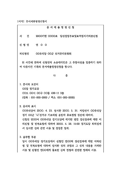 주요내용 : 소송에서 증거로 사용될 문서를 상대방이나 제3자가 소지하고 있어 직접 받을 수 없을 때 법원에 제출을 명령달라고 요청할 목적으로 사용되어지는 신청서 양식임. 단 무단전재 방지목적으로 PDF 파일로 올리니, 구매하신 후 혹 원본 파일이 필요하신 분들은 톡이나 문자, 메일, 전화 등을 주시면 작성방법 등에 대한 간단한 무료상담과 함께 원본 파일을 보내드리도록 하겠습니다.