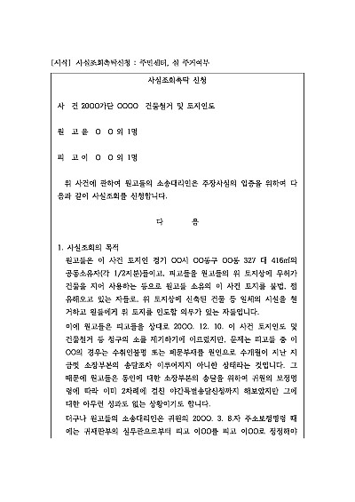 사실조회촉탁신청 : 주민센터, 실 주거여부 요약정보 및 구매
