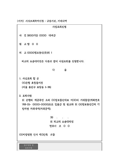 사실조회촉탁신청 : 금융기관, 거래내역 요약정보 및 구매