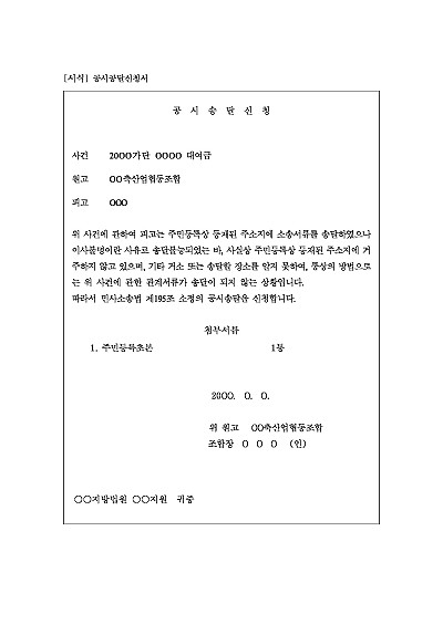 주요내용 : 상대방의 주소나 거소를 알 수 없어 일반적인 방법으로 서류를 송달할 수 없을 때 법원 게시판 등에 게시하여 송달하는 것처럼 간주해 법적 효과를 발생시키기 위한 목적으로 사용되어지는 신청서 양식임. 단 무단전재 방지목적으로 PDF 파일로 올리니구매하신 후 혹 원본 파일이 필요하신 분들은 톡이나 문자메일전화 등을 주시면 작성방법 등에 대한 간단한 무료상담과 함께 원본 파일을 보내드리도록 하겠습니다.