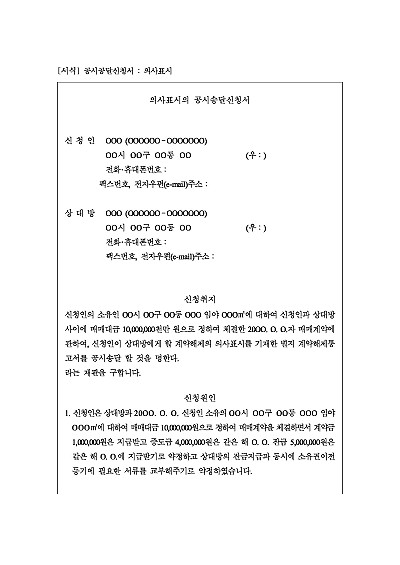주요내용 : 상대방의 주소나 소재를 알 수 없을 때, 법원의 공시절차를 통해 의사표시의 효력을 상대방에게 전달하기 위한 목적으로 사용되어지는 신청서 양식임. 단 무단전재 방지목적으로 PDF 파일로 올리니, 구매하신 후 혹 원본 파일이 필요하신 분들은 톡이나 문자, 메일, 전화 등을 주시면 작성방법 등에 대한 간단한 무료상담과 함께 원본 파일을 보내드리도록 하겠습니다.