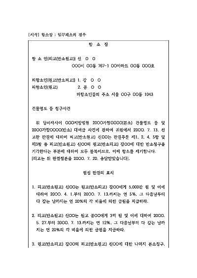 주요내용 : 원심판결에 불복하여 상급법원에 다시 재판해 달라고하는 목적으로 사용되어지는 양식임. 단 무단전재 방지목적으로 PDF 파일로 올리니, 구매하신 후 혹 원본 파일이 필요하신 분들은 톡이나 문자, 메일, 전화 등을 주시면 작성방법 등에 대한 간단한 무료상담과 함께 원본 파일을 보내드리도록 하겠습니다.