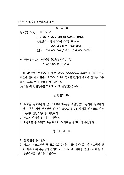 항소장 : 전부패소의 경우 요약정보 및 구매