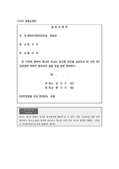 주요내용 : 불필요한 항소 절차를 생략하여 시간과 비용을 절약하고 상고할 권리는 유보화되 항소심 심판 자체를 피하려는 목적으로 사용되어지는 합의서 양식임. 단 무단전재 방지목적으로 PDF 파일로 올리니, 구매하신 후 혹 원본 파일이 필요하신 분들은 톡이나 문자, 메일, 전화 등을 주시면 작성방법 등에 대한 간단한 무료상담과 함께 원본 파일을 보내드리도록 하겠습니다.