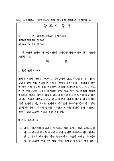 상고이유서 – 배당금수령 권리, 사실오인, 심리미진, 법리오해 등 요약정보 및 구매