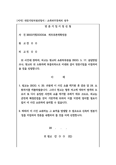 변론기일지정신청서 : 소취하부동의의 경우 요약정보 및 구매