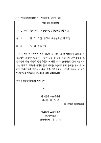 변론기일변경신청서 : 변론중첩, 상대방 동의 요약정보 및 구매