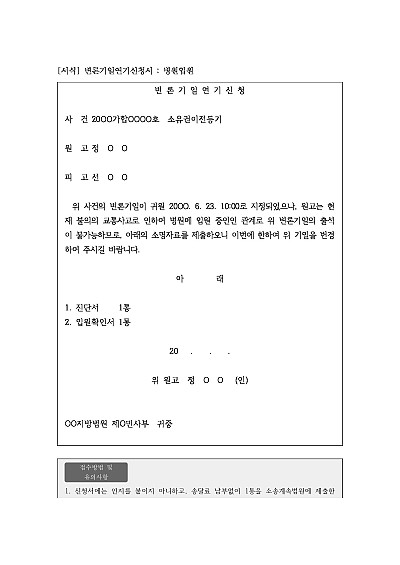 기일변경 등 각종 신청