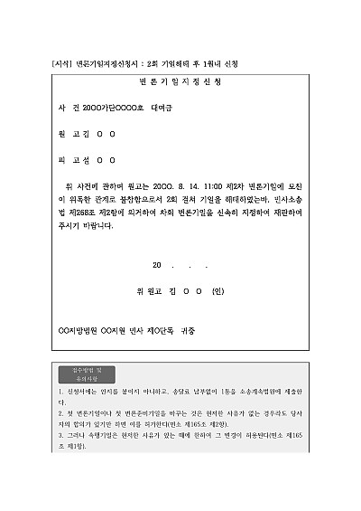 변론기일지정신청서 : 2회 기일해태 후 1월내 신청 요약정보 및 구매