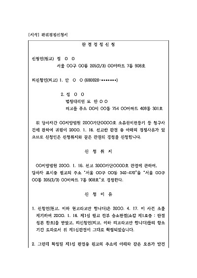 판결경정신청서 요약정보 및 구매