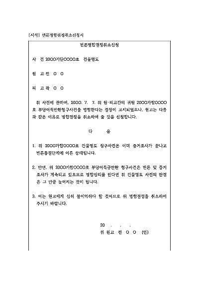 변론병합결정취소신청서 요약정보 및 구매