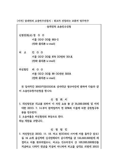 승계인의 소송인수신청서 : 원고가 신청하는 교환적 일부인수 요약정보 및 구매