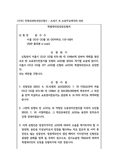 특별대리인선임신청서 : 소제기 전 소송무능력자에 대한 요약정보 및 구매