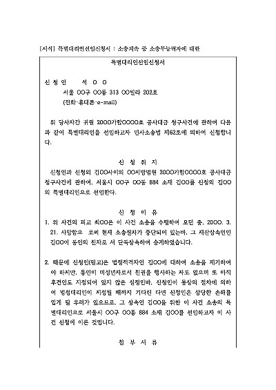특별대리인선임신청서 : 소송계속 중 소송무능력자에 대한 요약정보 및 구매