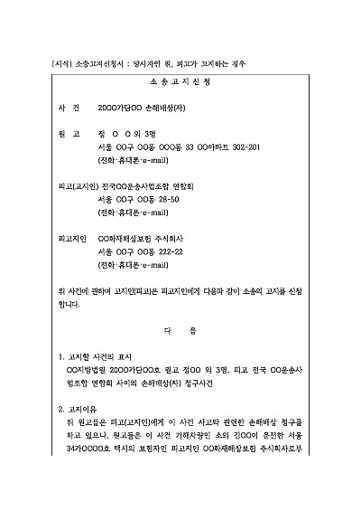 소송고지신청서 : 당사자인 원, 피고가 고지하는 경우 요약정보 및 구매