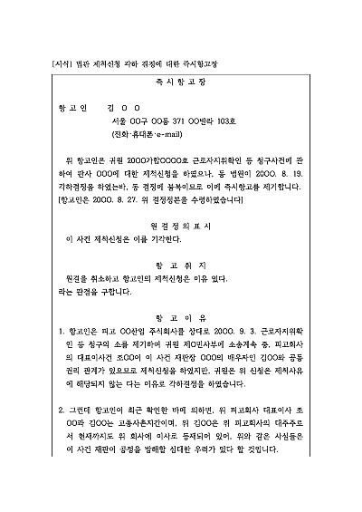 주요내용 : 법관의 공정성에 대한 당사자의 주장을 재심사하여 부당하게 신청이 각하되는 것을 막고, 신속하게 법관의 공정성을 확보하여 재판이 진해되도록 하기 위한 목적으로 사용되어지는 신청서 양식임. 단 무단전재 방지목적으로 PDF 파일로 올리니, 구매하신 후 혹 원본 파일이 필요하신 분들은 톡이나 문자, 메일, 전화 등을 주시면 작성방법 등에 대한 간단한 무료상담과 함께 원본 파일을 보내드리도록 하겠습니다.