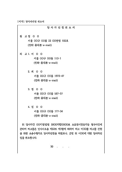 주요내용 : 기존에 소송을 대신 수행하기로 선정했던 당사자를 더 이상 선정하지 않고 그 지위를 박탈하기 위한 목적으로 사용되어지는 양식임. 단 무단전재 방지목적으로 PDF 파일로 올리니, 구매하신 후 혹 원본 파일이 필요하신 분들은 톡이나 문자, 메일, 전화 등을 주시면 작성방법 등에 대한 간단한 무료상담과 함께 원본 파일을 보내드리도록 하겠습니다.