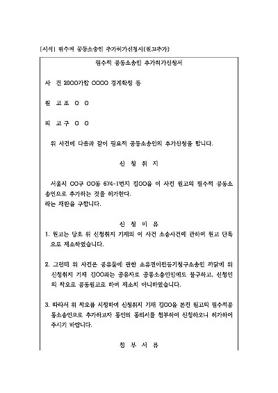 필수적 공동소송인 추가허가신청서 : 원고추가 요약정보 및 구매