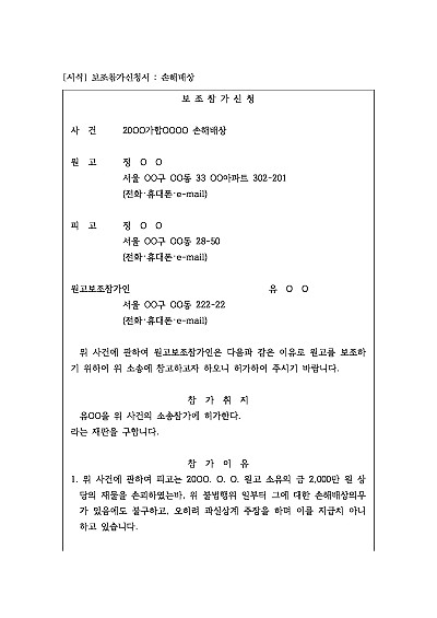 보조참가신청서 : 손해배상 요약정보 및 구매