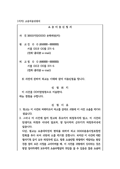 주요내용 : 관할위반으로 인해 소송이 잘못 제기된 경우 또는 이미 관할 법원에서 소송이 진행중이라도 현저한 손해나 지연을 피해기 위한 목적으로 더적합한 법원으로 사건을 옮기기 위한 목적으로 사용되어지는 신청서 양식임. 단 무단전재 방지목적으로 PDF 파일로 올리니구매하신 후 혹 원본 파일이 필요하신 분들은 톡이나 문자메일전화 등을 주시면 작성방법 등에 대한 간단한 무료상담과 함께 원본 파일을 보내드리도록 하겠습니다.