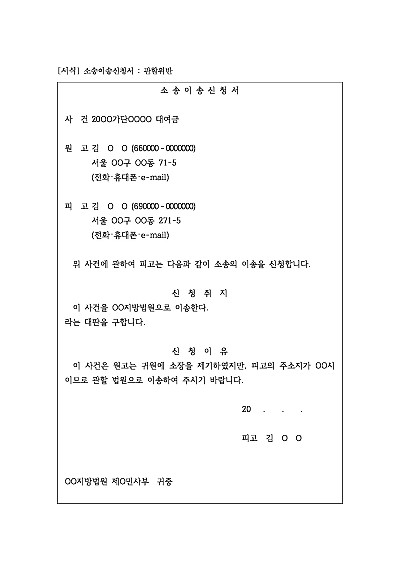 주요내용 : 관할위반으로 인해 소송이 잘못 제기된 경우 또는 이미 관할 법원에서 소송이 진행중이라도 현저한 손해나 지연을 피해기 위한 목적으로 더적합한 법원으로 사건을 옮기기 위한 목적으로 사용되어지는 신청서 양식임. 단 무단전재 방지목적으로 PDF 파일로 올리니구매하신 후 혹 원본 파일이 필요하신 분들은 톡이나 문자메일전화 등을 주시면 작성방법 등에 대한 간단한 무료상담과 함께 원본 파일을 보내드리도록 하겠습니다.