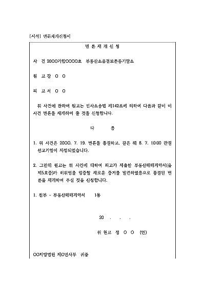 주요내용 : 변론이 종결된 후에도 중요한 주장을 하거나 증거를 제출할 필요가 있는 때 그 기회를 갖을 목적으로 사용되어지는 신청서 양식임단 무단전재 방지목적으로 PDF 파일로 올리니구매하신 후 혹 원본 파일이 필요하신 분들은 톡이나 문자메일전화 등을 주시면 작성방법 등에 대한 간단한 무료상담과 함께 원본 파일을 보내드리도록 하겠습니다.