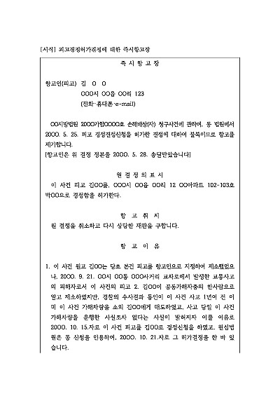 주요내용 : 피고경정허가 결정에 대한 불복시 사용되어지는 항고장 양식임. 단 무단전재 방지목적으로 PDF 파일로 올리니, 구매하신 후 혹 원본 파일이 필요하신 분들은 톡이나 문자, 메일, 전화 등을 주시면 작성방법 등에 대한 간단한 무료상담과 함께 원본 파일을 보내드리도록 하겠습니다.