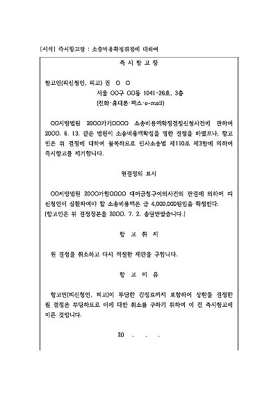 즉시항고장 : 소송비용확정결정에 대하여 요약정보 및 구매