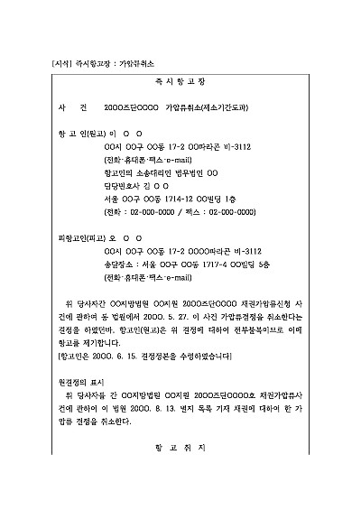 즉시항고장 : 가압류취소 요약정보 및 구매