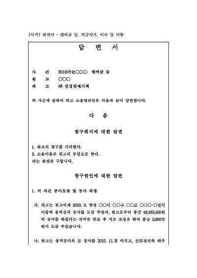 [로펌제작] 답변서 – 대여금 등, 지급시기, 이자 등 다툼 요약정보 및 구매