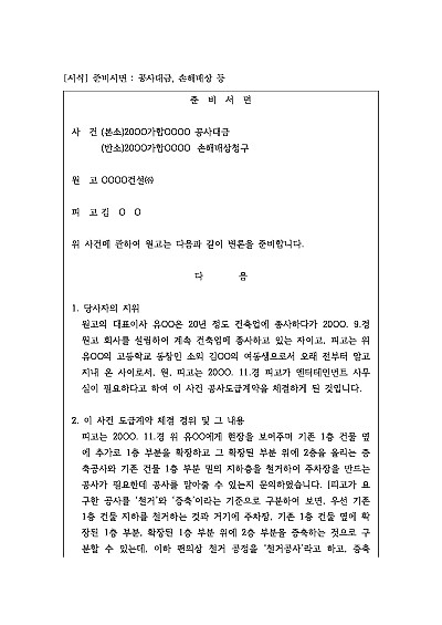 준비서면 : 공사대금, 손해배상 등 요약정보 및 구매