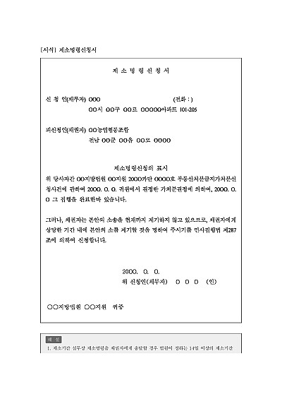 주요내용 : 가압류나 가처분 결정 후 채권자가 소송을 제기하지 않는 경우, 채무자가 신속하게 본안 소송 절차를 진행시키거나 부동산 가압류 가처분을 신속하게 취소시키기 위한 목적으로 사용되어지는 신청서 양식임. 단 무단전재 방지목적으로 PDF 파일로 올리니, 구매하신 후 혹 원본 파일이 필요하신 분들은 톡이나 문자, 메일, 전화 등을 주시면 작성방법 등에 대한 간단한 무료상담과 함께 원본 파일을 보내드리도록 하겠습니다.