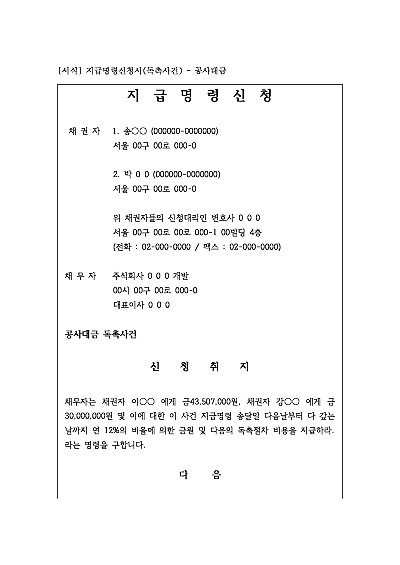 [로펌제작] 지급명령신청서(독촉사건) – 공사대금 요약정보 및 구매