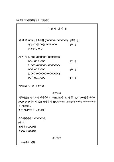 주요내용 : 외상구매계약, 외상대금 장기간 미변제시 그 지급을 구하기 위한 목적으로 사용되어지는 신청서 양식임. 단 무단전재 방지목적으로 PDF 파일로 올리니구매하신 후 혹 원본 파일이 필요하신 분들은 톡이나 문자메일전화 등을 주시면 작성방법 등에 대한 간단한 무료상담과 함께 원본 파일을 보내드리도록 하겠습니다.