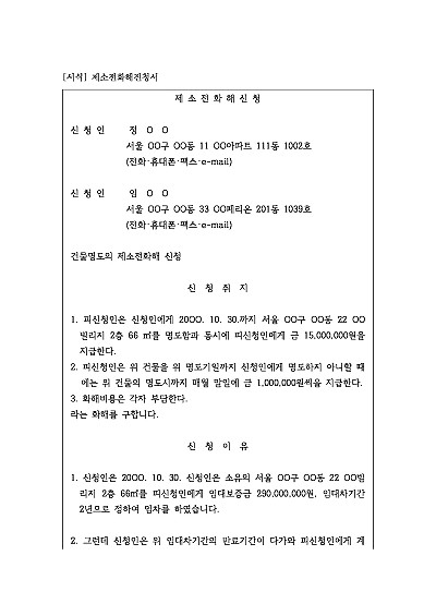 주요내용 : 건물에 대한 임대차계약을 체결하면서, 임대차기간 만료 후 상호간 분쟁해결을 목적으로 임대차계약 상 준수사항 및 명도, 그리고 유익비청  청구포기 등의 내용을 담아 사전에  제소전 화해절차를 통해 권리의무 관계를 확정할 때 사용되어지는 양식임. 단 무단전재 방지목적으로 PDF 파일로 올리니구매하신 후 혹 원본 파일이 필요하신 분들은 톡이나 문자메일전화 등을 주시면 작성방법 등에 대한 간단한 무료상담과 함께 원본 파일을 보내드리도록 하겠습니다.