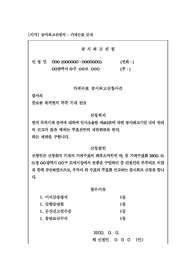 공시최고신청서 : 가계수표 분실 요약정보 및 구매